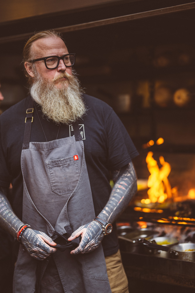 Publicity shoot for Andrew Clarke, capturing his bold, modern culinary style with striking, editorial-quality imagery. Shot in a live kitchen setting, the session blends dynamic action shots with confident portraits to showcase both craft and personality.
